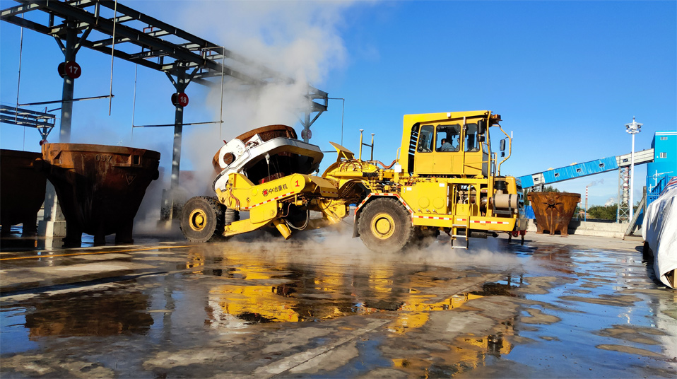 由中冶寶鋼研制的70噸鉸接式抱罐車,采用鵝頸鉸接型式,額定載重75噸,重載最高時(shí)速為每小時(shí)20公里,翻罐角度105度,最大爬坡能力8%,最小轉(zhuǎn)彎半徑9米。該車型應(yīng)用專利技術(shù)10項(xiàng),在國內(nèi)有色冶煉市場占有率超過75%,先后榮獲中國有色工業(yè)協(xié)會(huì)、中國鋼鐵工業(yè)協(xié)會(huì)科技獎(jiǎng),中國施工企業(yè)管理和中國循環(huán)經(jīng)濟(jì)協(xié)會(huì)專利獎(jiǎng)等榮譽(yù)。